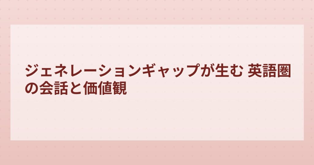 世代でこんなに違う!英語圏の「ジェネレーションギャップ」に見る会話と価値観の変化