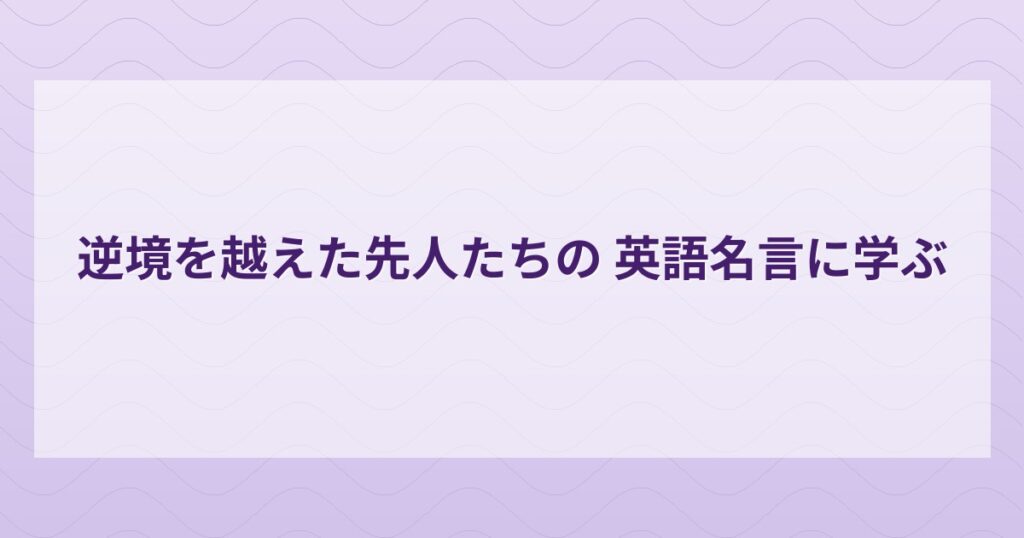 大人だからこそ心に響く。逆境を越えた先人たちの『人生の節目』に学ぶ英語名言・格言7選