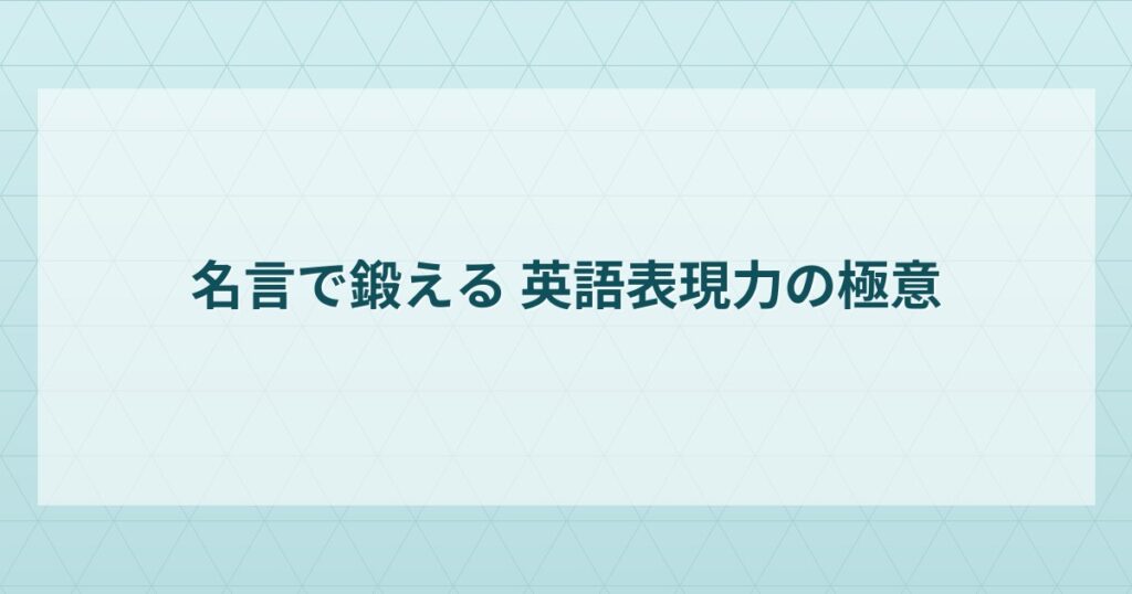英作文に活きる名言の使い方|英語ライティング力が飛躍する名文を使った『表現力強化トレーニング』