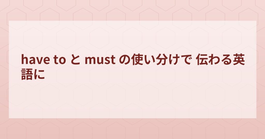 英語で「~しなければならない」と伝える時、どの表現を使っていますか?多くの学習者は、「must」と「have to」の違いを「mustの方が強い義務」と学びます。しかし、実際のコミュニケーションでは、この単純な強弱ルールだけではうまくいかないことがあり... -