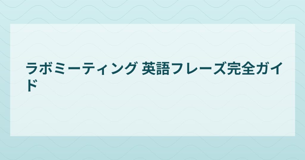 研究室ミーティングで英語を制する!週次ゼミ・ラボミーティングで使える『進捗報告&議論』実践フレーズ完全ガイド