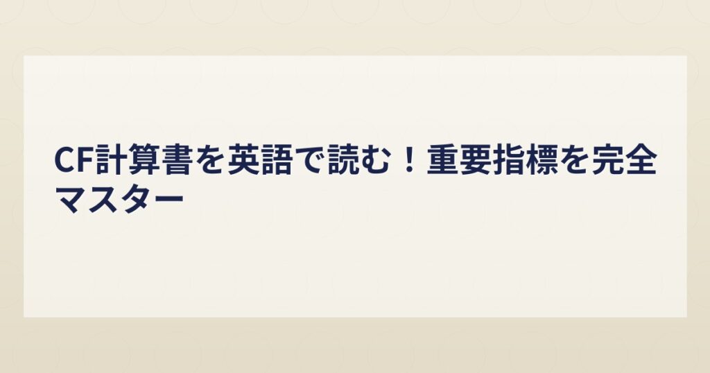 「売上は好調なのに、なぜか手元にお金がない…」そんな経験や話を聞いたことはありませんか?実は、財務諸表の中でこの"お金の実態"を唯一正直に教えてくれるのが、キャッシュフロー計算書(CF計算書)です。英語のビジネス文書や決算資料を読む機会が増え... -