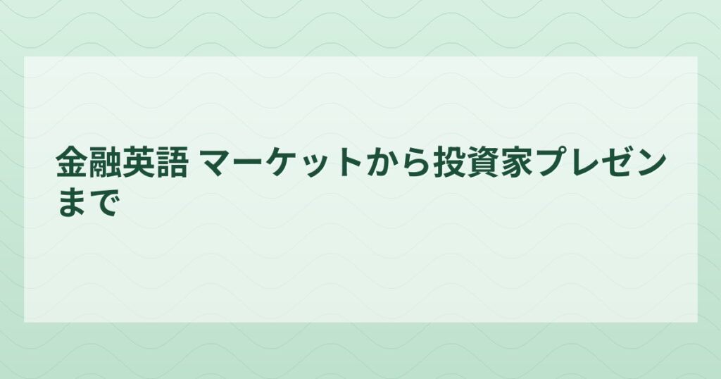国際金融・証券アナリストが知っておくべき必須英語表現ガイド:マーケットレポートから投資家向けプレゼンまで徹底解説