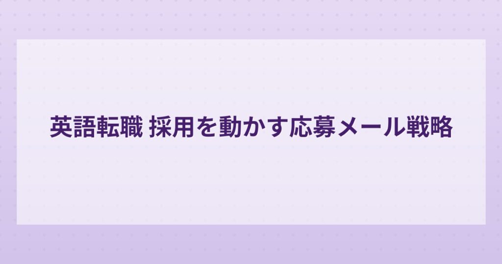 英語転職の「書類選考」を突破する!英文カバーレター不要論を覆す、採用担当者の心を動かす『送付メール&応募メッセージ』戦略完全ガイド