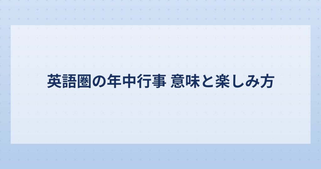ハロウィン、クリスマス、サンクスギビング……英語圏の行事は映画やドラマで目にする機会が多いですよね。でも「なんとなく知っている」だけでは、英語の文章や会話の本当のニュアンスは掴めません。行事の背景にある歴史・宗教・文化を理解することが、英... -