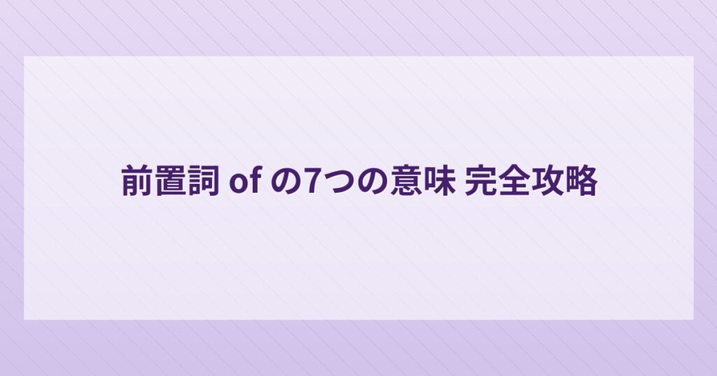 英語を学んでいると、必ずといっていいほど出くわす前置詞「of」。中学校で「〜の」と習って以来、ずっとその訳し方だけで乗り切ろうとしていませんか?実は of は英語の中でもっとも使用頻度が高い前置詞のひとつで、「〜の」では到底カバーできない多彩... -