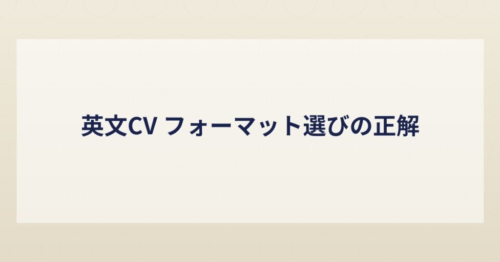 職種・経験年数・国籍別に見る!英文CV・レジュメの『フォーマット選び』完全ガイド:クロノロジカル・ファンクショナル・コンビネーションの正しい使い分け