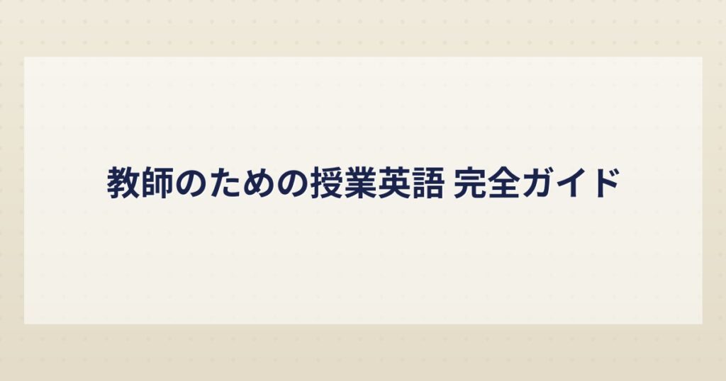 英語で授業を進める、英語で学習者を指導する——そんな場面で「どんな英語を使えばいいのか」と戸惑ったことはありませんか?ビジネスで使う英語は知っているのに、教育現場では何か違う気がする……その直感は正しいです。教室で使う英語「Classroom English... -