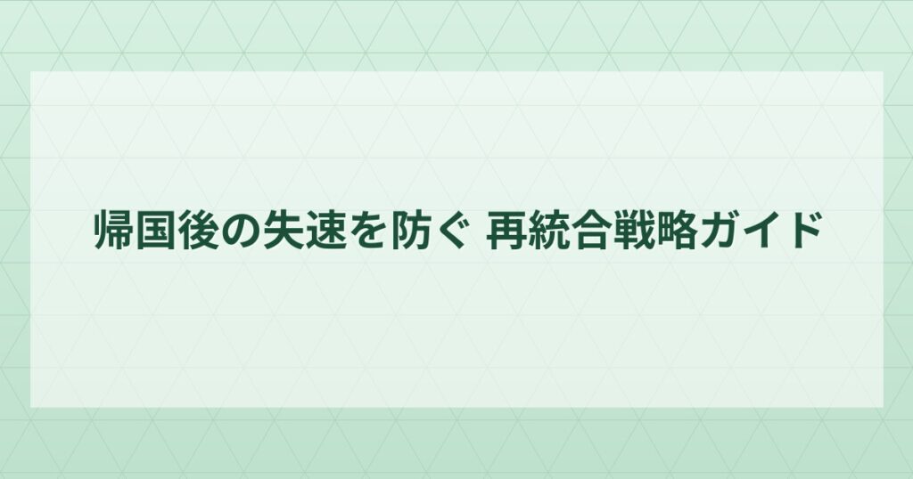 グローバルキャリアを止める『帰国後の失速』を防ぐ!海外赴任・留学後に評価を落とさないための『再統合戦略』完全ガイド