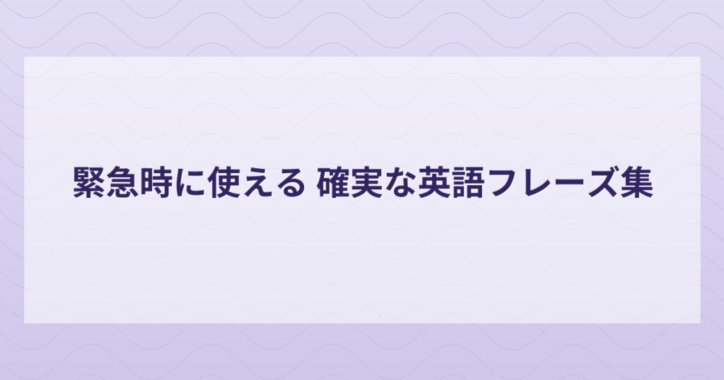 以下の3フレーズは、体調不良、盗難、事故、道迷いなど、あらゆる状況の第一声として使えます。シンプルで覚えやすく、相手にも必ず伝わる確実な表現です。