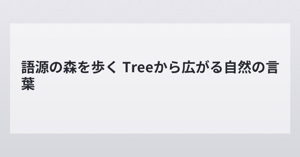 英語を学ぶ旅は、単語の一つ一つが持つ小さな歴史を知ることから始まります。その歴史の森へ分け入り、最初に私たちが目にするのは、私たちの身近にありながら、実に豊かな派生語の世界を生み出してきた「tree」という単語です。なぜ「木」が「構造図」や「家系図」を意味するようになったのか。その秘密は語源に隠されています。このセクションでは、旅の起点として「tree」の語源と基本概念をひも解き、後の広がりの土台となるイメージをしっかりと確認していきましょう。