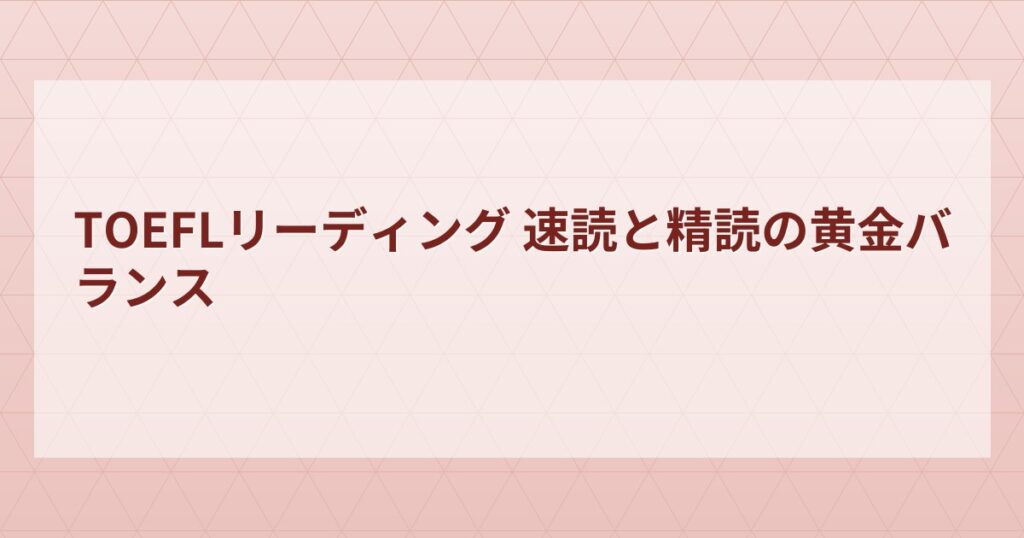TOEFL iBTリーディングは、多くの受験者が時間不足に直面するセクションです。長く複雑なアカデミックなパッセージを読み、10問の問題を解くのに与えられる時間はわずか。スコアアップを目指すなら、「正確さ」と「速さ」の絶妙なバランスを取る戦略的読解法が不可欠です。この記事では、パッセージの種類や設問に応じて「速読」と「精読」を使い分け、確実に時間内に全問解答を目指す具体的なテクニックを解説します。