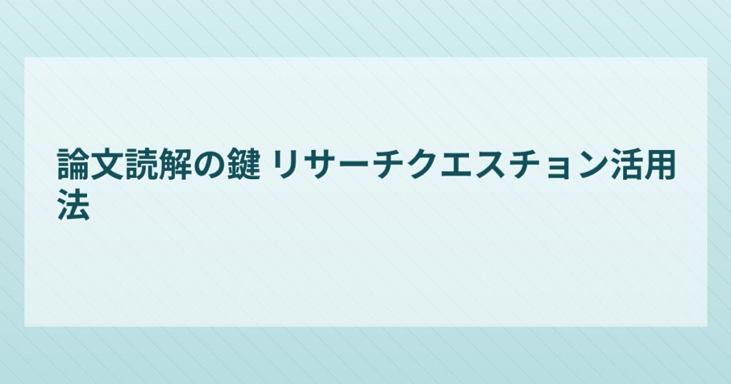 効率的な論文リーディングの鍵は、「リサーチクエスチョン(RQ)」を明確にすることです。これは「この論文を読むことで何を知りたいのか?」というあなた自身の問いです。