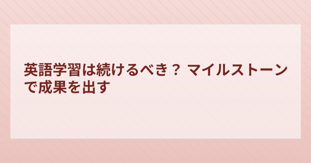 「社会人の英語学習は続けられない」と感じる大きな理由の一つは、ゴールが遠く、途中で「自分には無理かもしれない」という無力感に襲われることです。長期的な目標だけを見続けていると、なかなか進歩が実感できず、挫折の原因になりがちです。