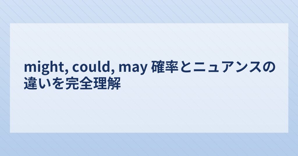 英語で「〜かもしれない」と表現するとき、あなたはどんな単語を思い浮かべますか?多くの学習者は「may, might, could」の3つを思い出し、「確率の順番はmay > might > couldかな?」と覚えようとするでしょう。しかし、実際の会話や文章では、この単純な「確率の序列」だけでは説明できない使い方が数多く存在します。例えば、丁寧な依頼に「Could you…?」が使われるのはなぜでしょう?また、控えめな意見を述べるときに「I might say…」と言うのは、本当に確率が低いからでしょうか?この記事では、「確率」という視点だけでは捉えきれない、話し手の「心の姿勢」や「情報の確かさ」という新たな視点から、これらの表現の本当の違いと使い分けを深掘りしていきます。