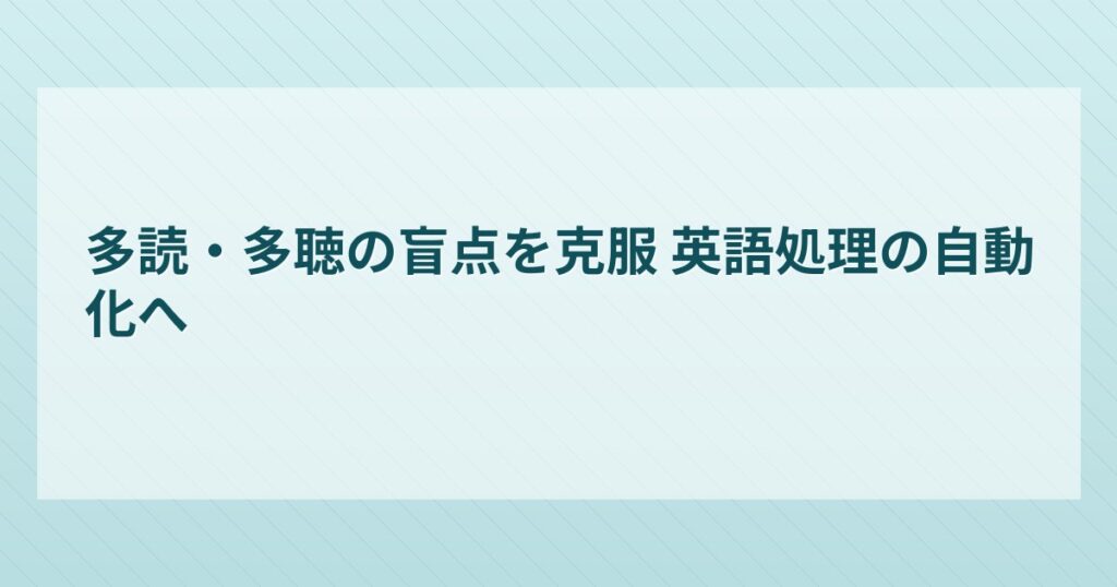 なぜ「多読多聴」だけでは伸び悩むのか? 中上級者が直面する「質の壁」
