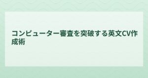 どの職種でも共通するのは「Responsible for…(担当した)」を捨て、動詞+数字+インパクトの3点セットで書くこと。この型を守るだけで、CVの説得力は劇的に変わります。