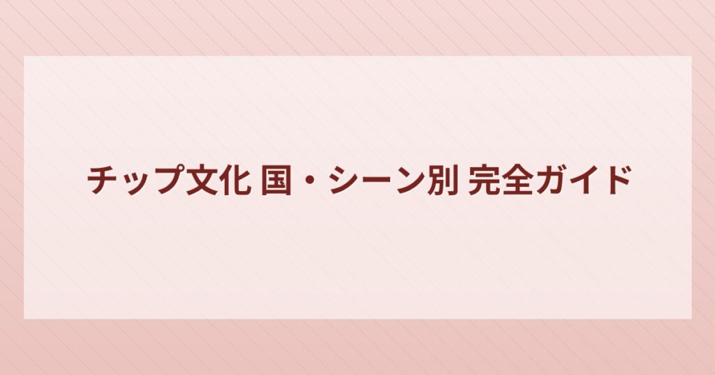 シーン別チップ相場ガイド——いくら渡せばいい?