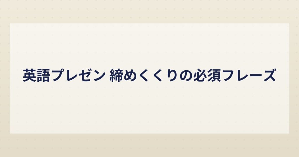 「プレゼンを英語で乗り切ったのに、なんとなく締まらない終わり方になってしまった…」そんな経験はありませんか?実は、プレゼンの印象は最後の数十秒で大きく決まります。どれだけ中身が充実していても、クロージングが弱ければ聴衆の記憶には残りません。このガイドでは、英語プレゼンの締めくくりを「記憶に残る」ものにするための構成とフレーズを徹底的に解説します。