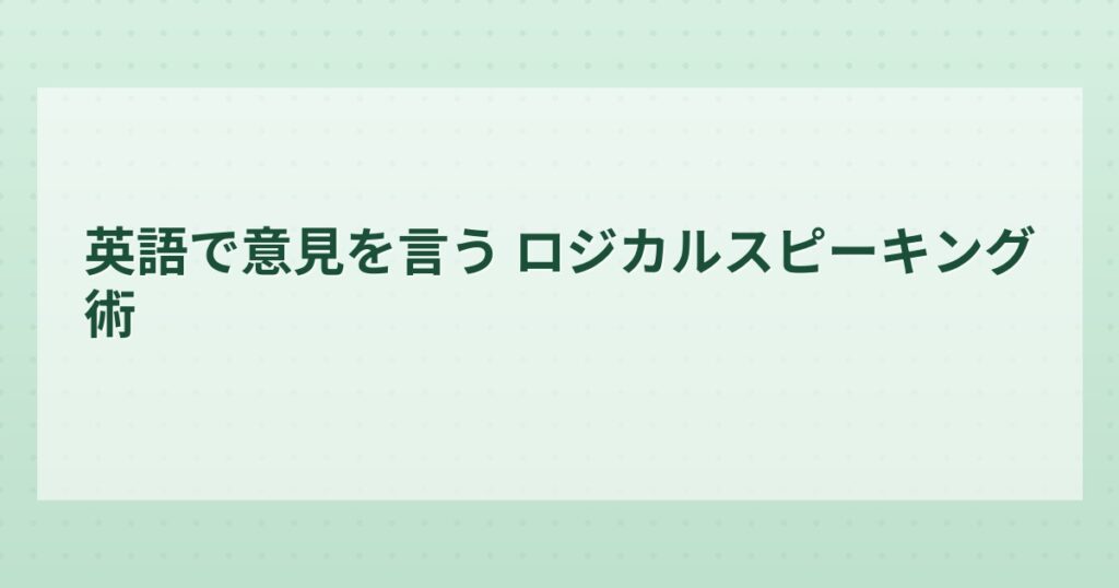 「単語も文法もそれなりに知っているのに、いざ英語で意見を聞かれると頭が真っ白になる」——そんな経験はありませんか? 実はこれ、英語力の問題ではなく、「何をどの順番で言うか」という発話の設計力が身についていないことが原因であるケースがほとんどです。この記事では、Yes/No以上の返答を瞬時に組み立てる「ロジカルスピーキング3ステップ」を解説します。まずは、あなたのスピーキングが詰まる本当の理由を一緒に整理しましょう。