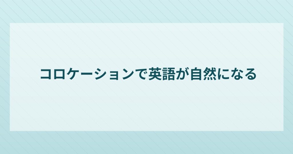 コロケーション(collocation)とは、ネイティブスピーカーが無意識のうちに従っている「単語の自然な組み合わせ」のことです。文法的に正しくても、コロケーションがズレていると英語として不自然に聞こえてしまいます。
