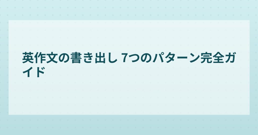 書き出しのパターンを知っているだけで、英作文の質は格段に上がります。ここでは試験でも実践でも使える7つのオープニングパターンを、構造・例文・NG例とともに徹底解説します。