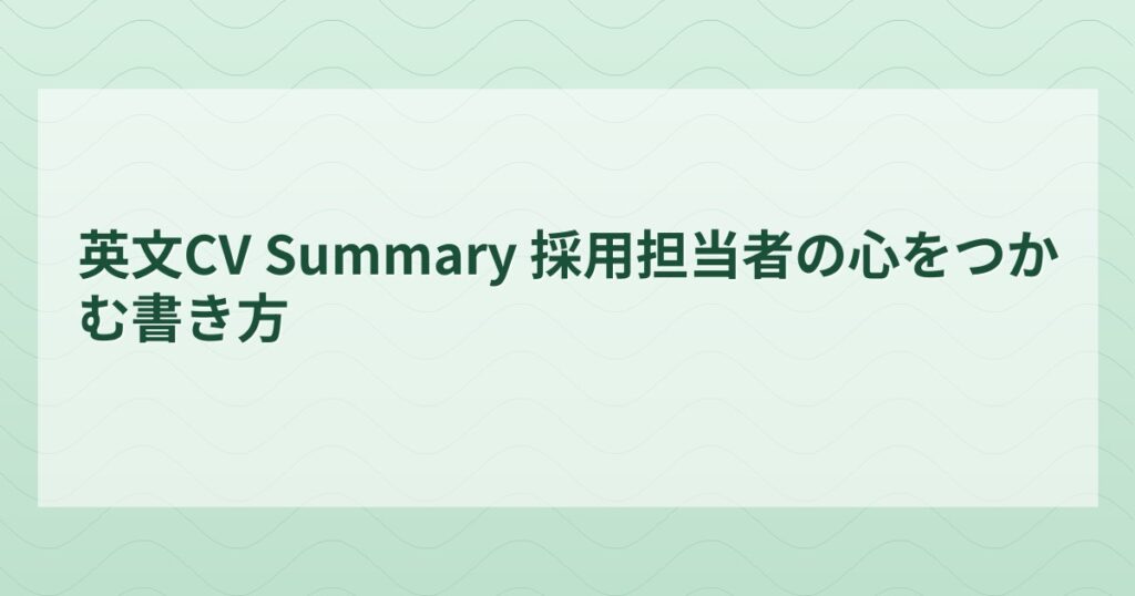 英文CVを書き始めるとき、多くの人がいきなり職歴や学歴を並べ始めます。でも実は、採用担当者が最初に目を向ける「サマリーセクション」を制することが、書類選考を突破する最大のカギなんです。どれだけ輝かしい実績があっても、冒頭で読む気を失わせて... -